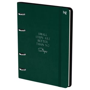Общая тетрадь на кольцах «Моно. Зеленый» от bg — это стильный и функциональный инструмент для учёбы или работы. Благодаря кольцевому механизму легко добавлять и вынимать листы. Тетрадь можно адаптировать под любые задачи. Она подходит для большого объёма записей. Изделие в формате А5 легко взять с собой куда угодно. Тетрадь поместится в папку или рюкзак. Внутренний блок состоит из 120 листов тонированной бумаги плотностью 70 г/м². Обложка выполнена из высококачественной экокожи. В отделке используется тиснение фольгой. Тип линовки — клетка. Минималистичный дизайн с мотивационной надписью на обложке оценят те, кто выбирает изделия по принципу «ничего лишнего». Изделие упаковано в пакет, который защищает от повреждений при транспортировке.