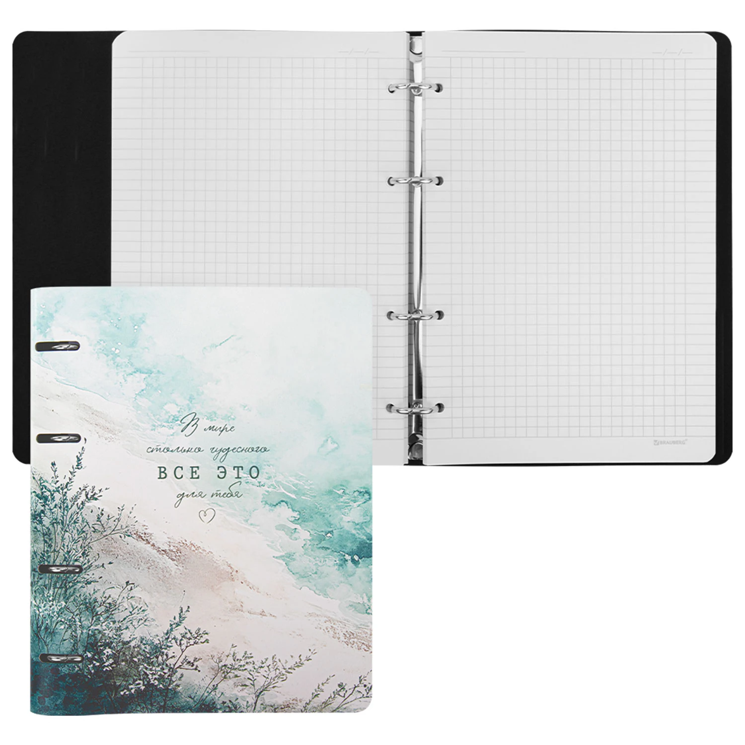 Тетрадь на кольцах BRAUBERG – это идеальный вариант для тех, кто ценит практичные и элегантные вещи.Блок состоит из 120 листов офсетной бумаги белого цвета плотностью 70 г/м2. Кольцевой механизм с 4-мя кольцами позволяет пользоваться сменным блоком в 120 листов. Линовка – клетка с полями. Мягкая интегральная обложка с вырубкой под кольца выполнена из износоустойчивого материала с текстурой под гладкую кожу. Формат А5 удобно носить в рюкзаке или сумке, что позволит брать на учебу или работу всего одну тетрадь с возможностью добавлять и менять листы. Полезный диаметр колец – 20 мм.