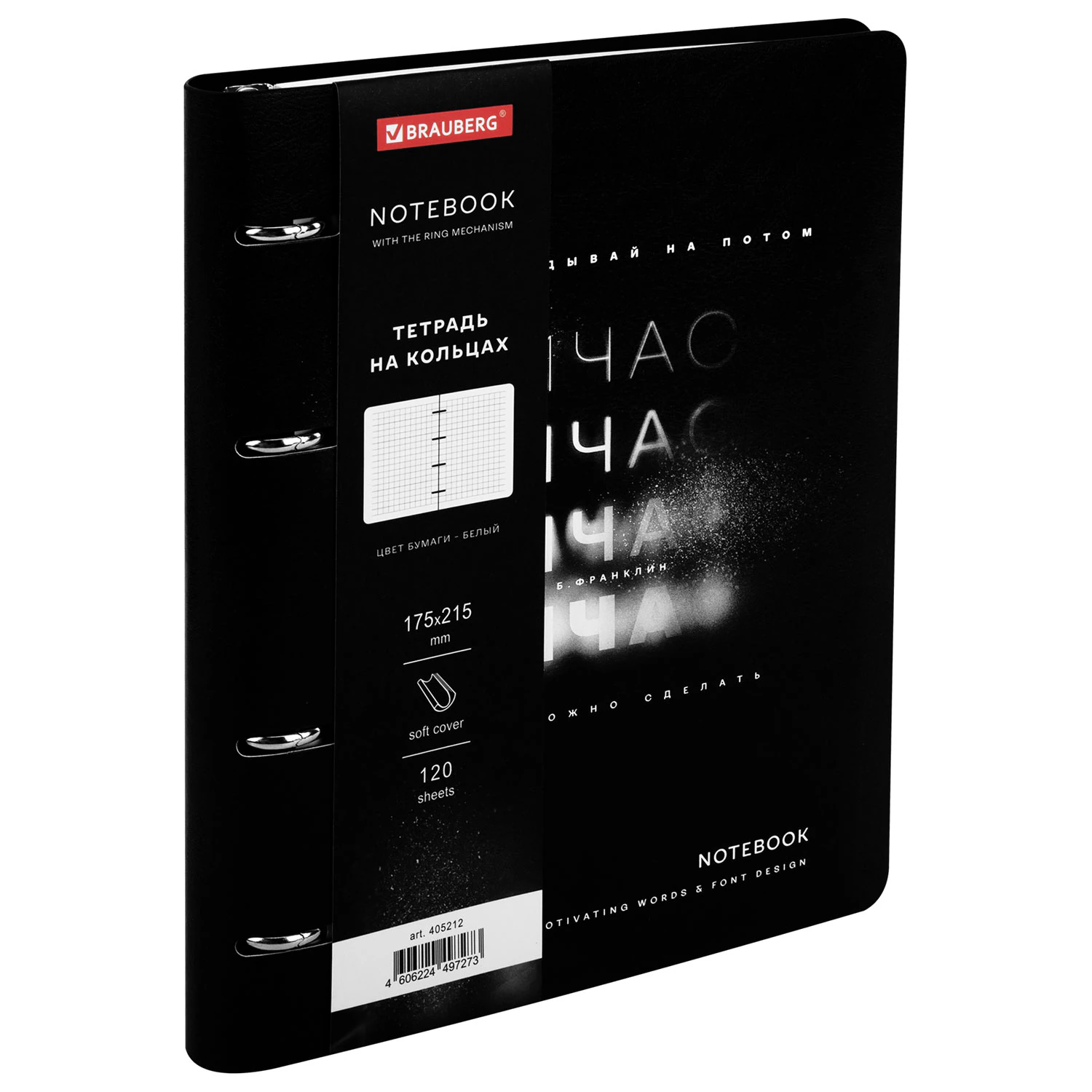 Тетрадь на кольцах BRAUBERG – это идеальный вариант для тех, кто ценит практичные и элегантные вещи.Блок состоит из 120 листов офсетной бумаги белого цвета плотностью 70 г/м2. Кольцевой механизм с 4-мя кольцами позволяет пользоваться сменным блоком в 120 листов. Линовка – клетка с полями. Мягкая интегральная обложка с вырубкой под кольца выполнена из износоустойчивого материала с текстурой под гладкую кожу. Формат А5 удобно носить в рюкзаке или сумке, что позволит брать на учебу или работу всего одну тетрадь с возможностью добавлять и менять листы. Полезный диаметр колец – 20 мм.