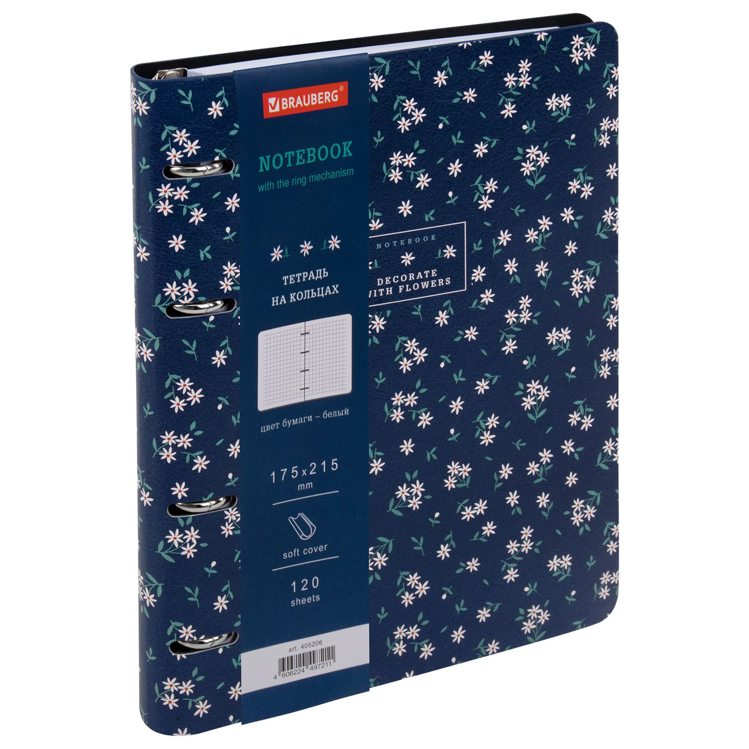 Тетрадь на кольцах А5 175х215мм, 120л, под кожу, BRAUBERG VISTA, Цветочный паттер