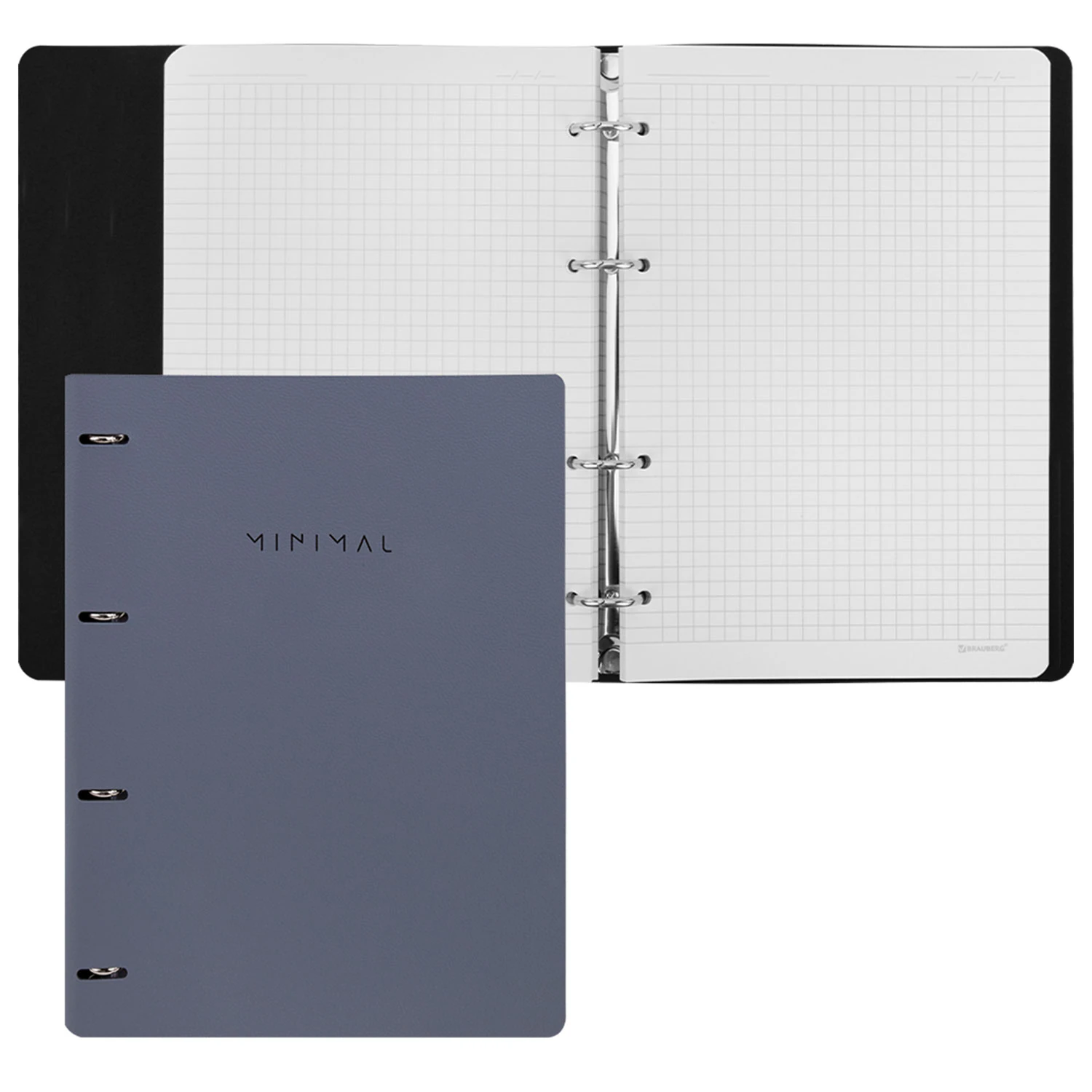 Тетрадь на кольцах БОЛЬШАЯ А4 240х310мм 120л, под кожу, BRAUBERG VISTA, Minimal серый
