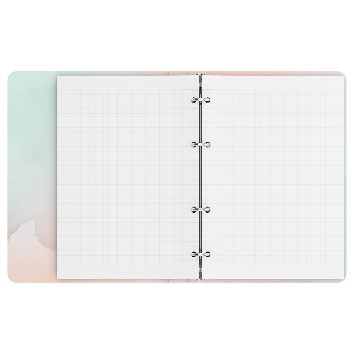 Тетрадь на кольцах BG формата А5 подходит для большого объёма записей. Эффектный дизайн обложки и форзаца поднимет настроение на учёбе или работе. Размер — 160*212 мм. Внутренний блок состоит из 120 белых листов с линовкой в клетку. Плотность офсетной бумаги — 60-65 г/м2. Белизна — 100%. Механизм из 4 колец обеспечивает быструю смену или добавление листов при необходимости. Обложка сделана из плотного картона, который надёжно защищает внутренний блок. Отделка обложки — soft-touch ламинация, тиснение фольгой. Тетрадь упакована в картон и индивидуальный пакет.