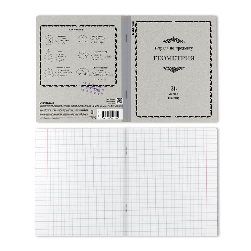 Тетрадь предметная формата А5+ (170х203 мм). Обложка из высококачественного мелованного картона плотностью 170 г/м2. В блоке 36 листов в клетку с полями. Бумага офсетная плотностью 60 г/м2. Белизна бумаги - 100%. Цвет линовки - синий. Скругленные уголки обложки и блока. Тип скрепления - скоба. Имеет инфо-блок с кратким изложением школьной программы
