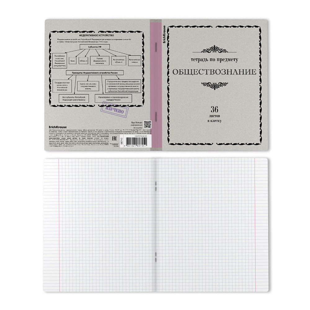 Тетрадь предметная ErichKrause Академкнига, ОБЩЕСТВОЗНАНИЕ, 36 листов, клетка 60745