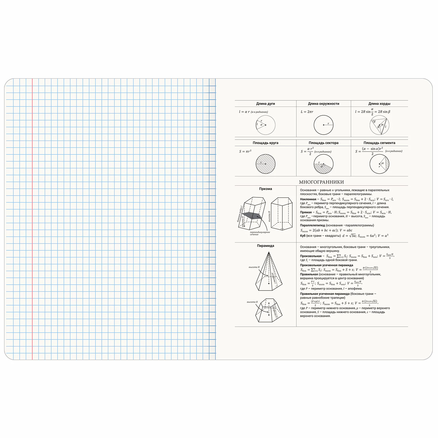 Предметная тетрадь BRAUBERG из серии "VINTAGE" предназначена для учащихся средних и старших классов. Выполнена в современном дизайне.Тетрадь по геометрии формата А5 (165х205 мм) содержит 48 листов, изготовленных из высококачественной офсетной бумаги плотностью 60 г/м2 и белизной 100%. Листы соединены скобами. Линовка блока – в клетку, красные поля. Обложка выполнена из мелованного картона плотностью 190 г/м2. Ламинация SoftTouch обеспечивает обложке мягкий, бархатистый тактильный эффект. Углы тетради скруглены. В справочном материале для учащихся собраны основные подсказки по школьному предмету.