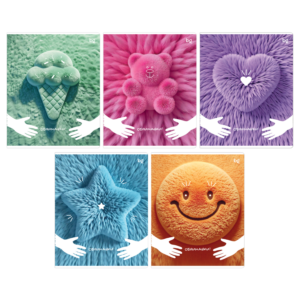 Общая тетрадь BG серии «Обнимашки» — отличный помощник для учёбы, работы и личных записей. Формат — А5 (165*205 мм). Внутренний блок на скрепке состоит из 80 листов в линию с полями. Белизна бумаги — 100 %. Листы сделаны из офсетной бумаги плотностью 60 г/м². Тетрадь подходит для письма шариковой, гелевой или капиллярной ручкой. Обложка с креативным дизайном выполнена из мелованного картона. В упаковке — микс из тетрадей пяти разных дизайнов.