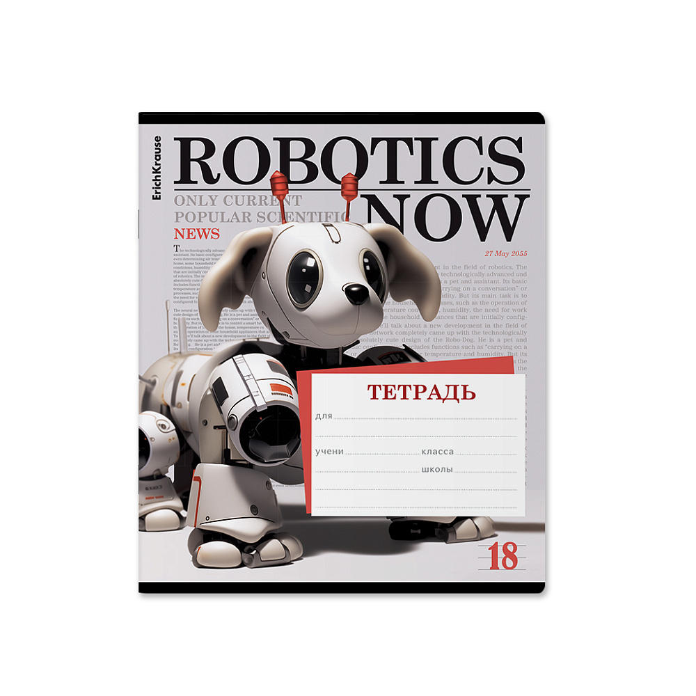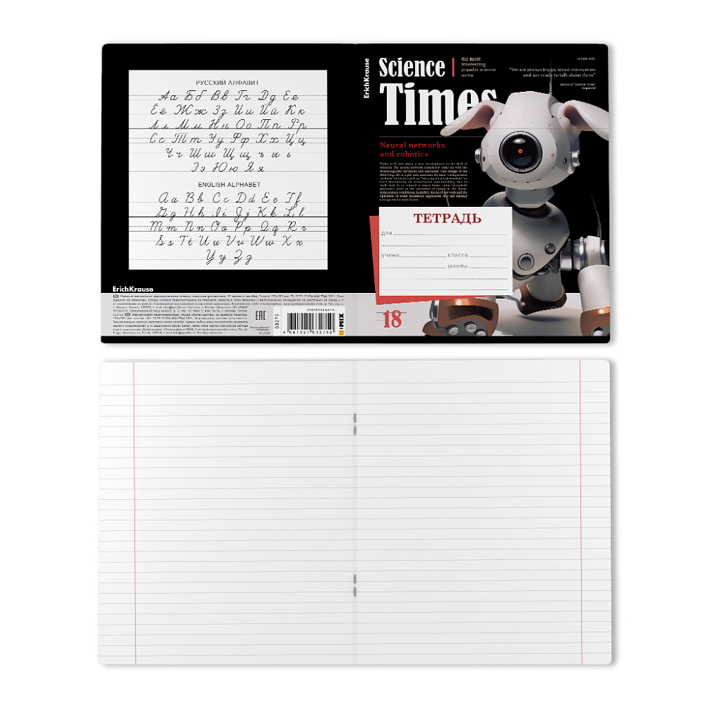 Тетрадь школьная ученическая формата А5+ (170х203 мм). Обложка из высококачественного мелованного картона плотностью 170 г/м2. В блоке 18 листов в линейку с полями. Бумага офсетная плотностью 60 г/м2. Цвет линовки - синий. Скругленные уголки обложки и блока.