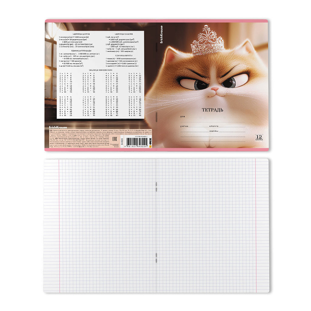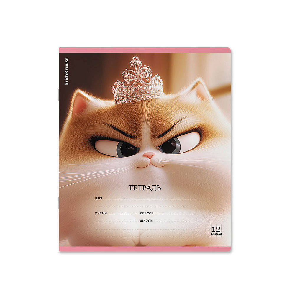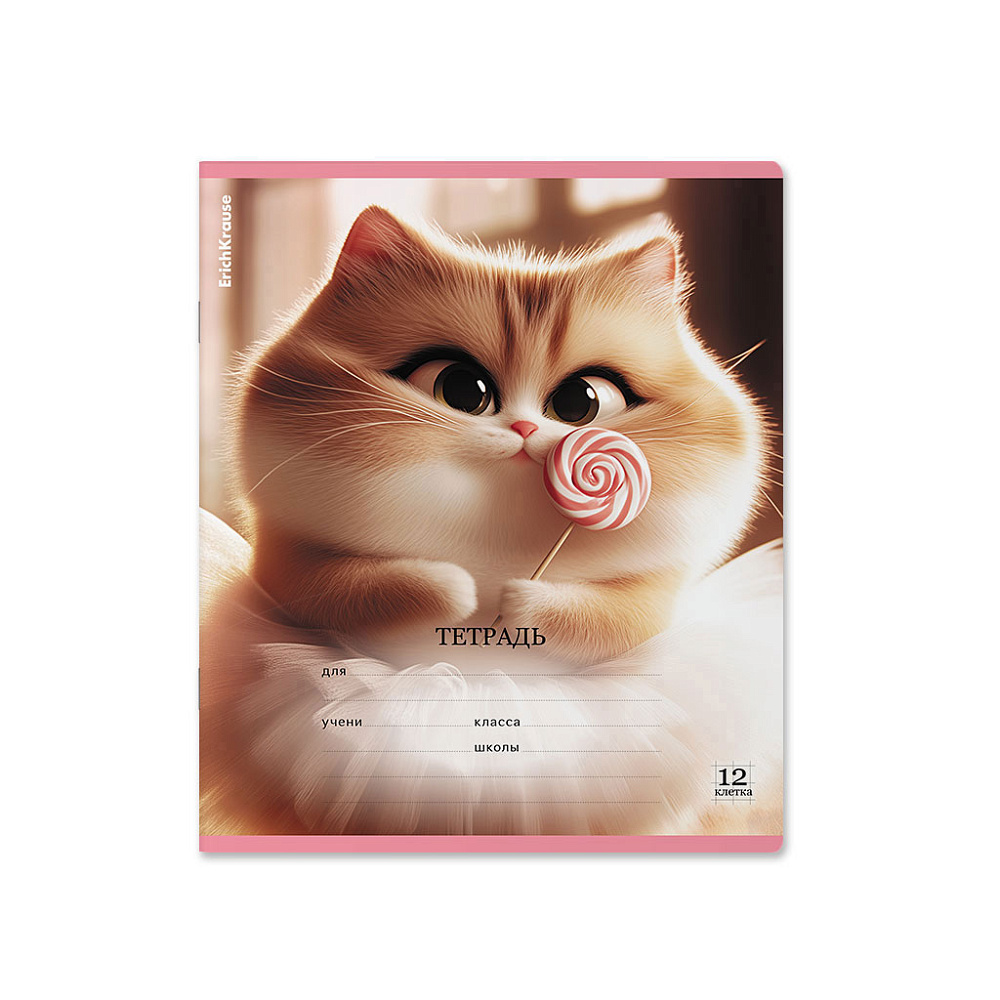 Тетрадь А5 12 л., ErichKrause Prima Cat, 12 листов, клетка, выборочный УФ-лак c глиттером