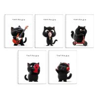 Тетрадь, 48 л, клетка, арт. 68551/ 5 ЧЕРНЫЙ КОТ /А5+, мягкий переплёт (2 скобы), обложка - выборочный ТВИН лак, мелованный картон 190 г/м