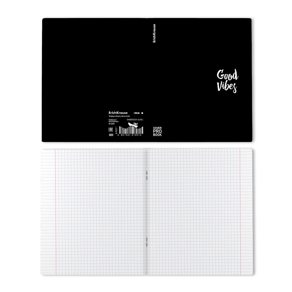 Тетрадь общая ученическая с пластиковой обложкой на скобе ErichKrause Words, черный, А5+, 48 листов, клетка_MIX-PACK