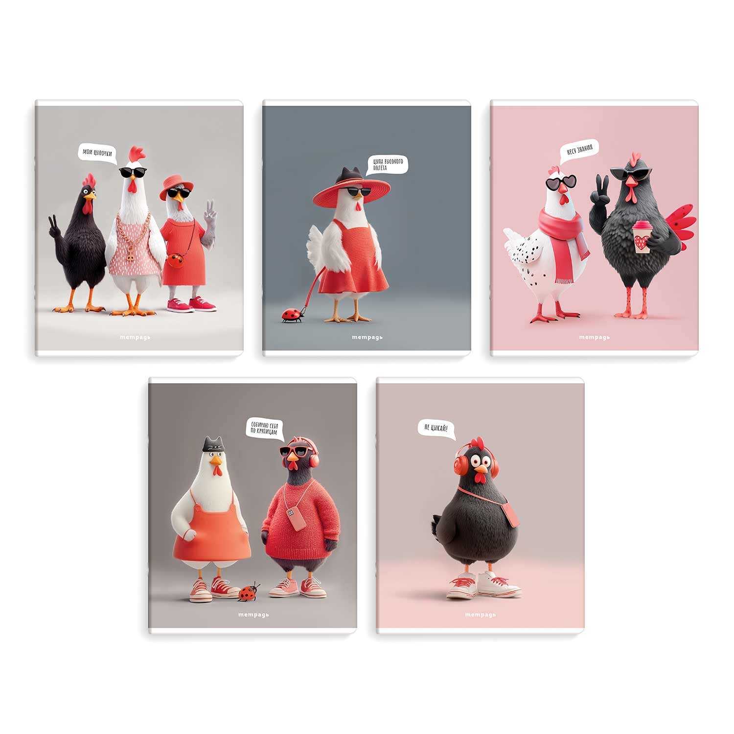 Тетрадь, 48 л, клетка, арт. 70923/ 5 СТИЛЬНЫЕ КУРОЧКИ /А5+, мягкий переплёт (2 скобы), обложка - выборочный УФ-лак, мелованный картон 190 г/м², упаковка ассорти