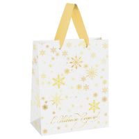 Пакет подарочный 26*32*12см MESHU "Gold snowflake", фольга, матовая ламинация 382312
