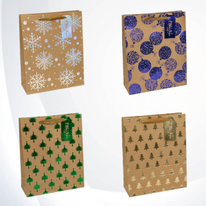 Пакет подарочный 32*26*12 см OMG Gift 150гр крафт "Новый год" ассорти