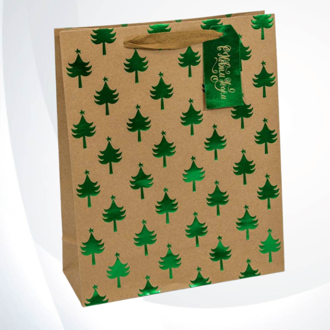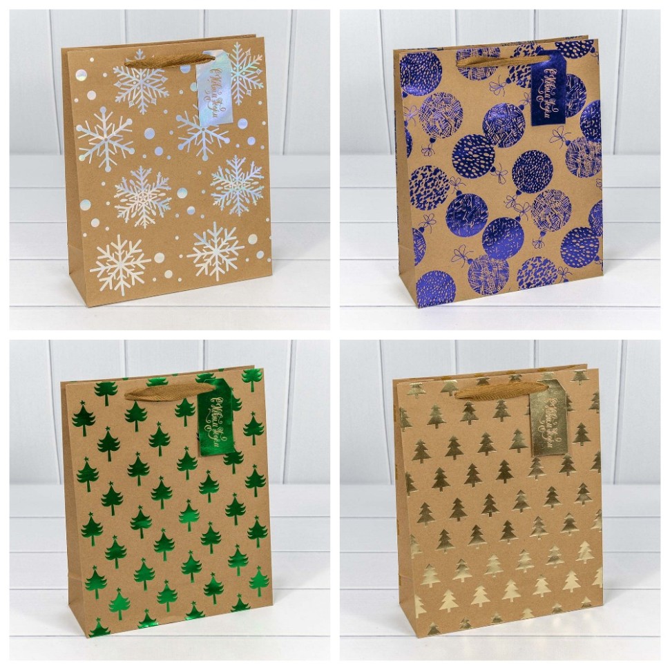 Пакет подарочный 32*26*12 см OMG Gift 150гр крафт "Новый год" ассорти