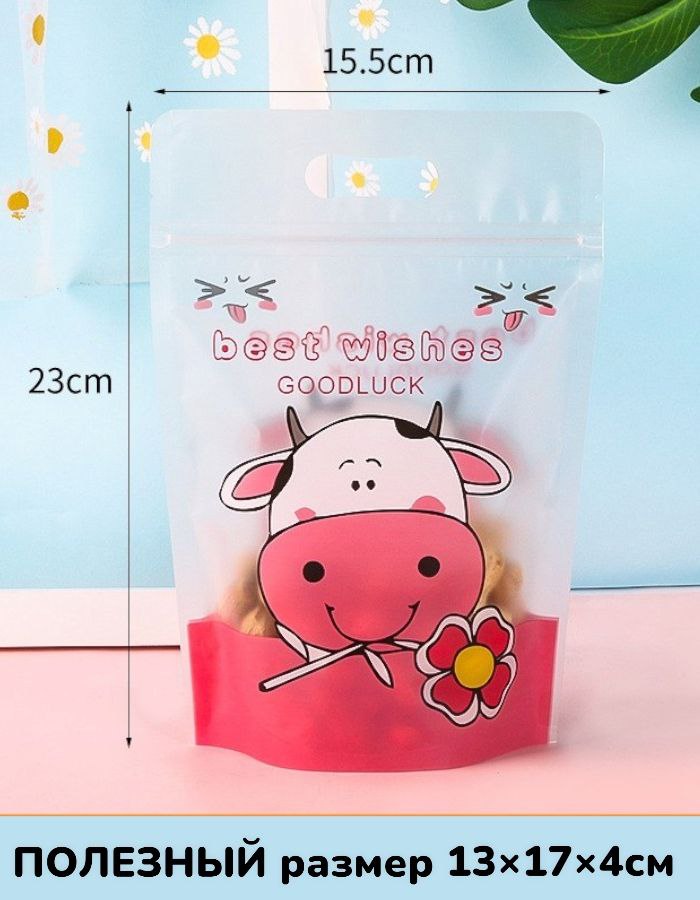 Пакет с застежкой-молнией Корова с цветком 15,5*23 (10 шт)