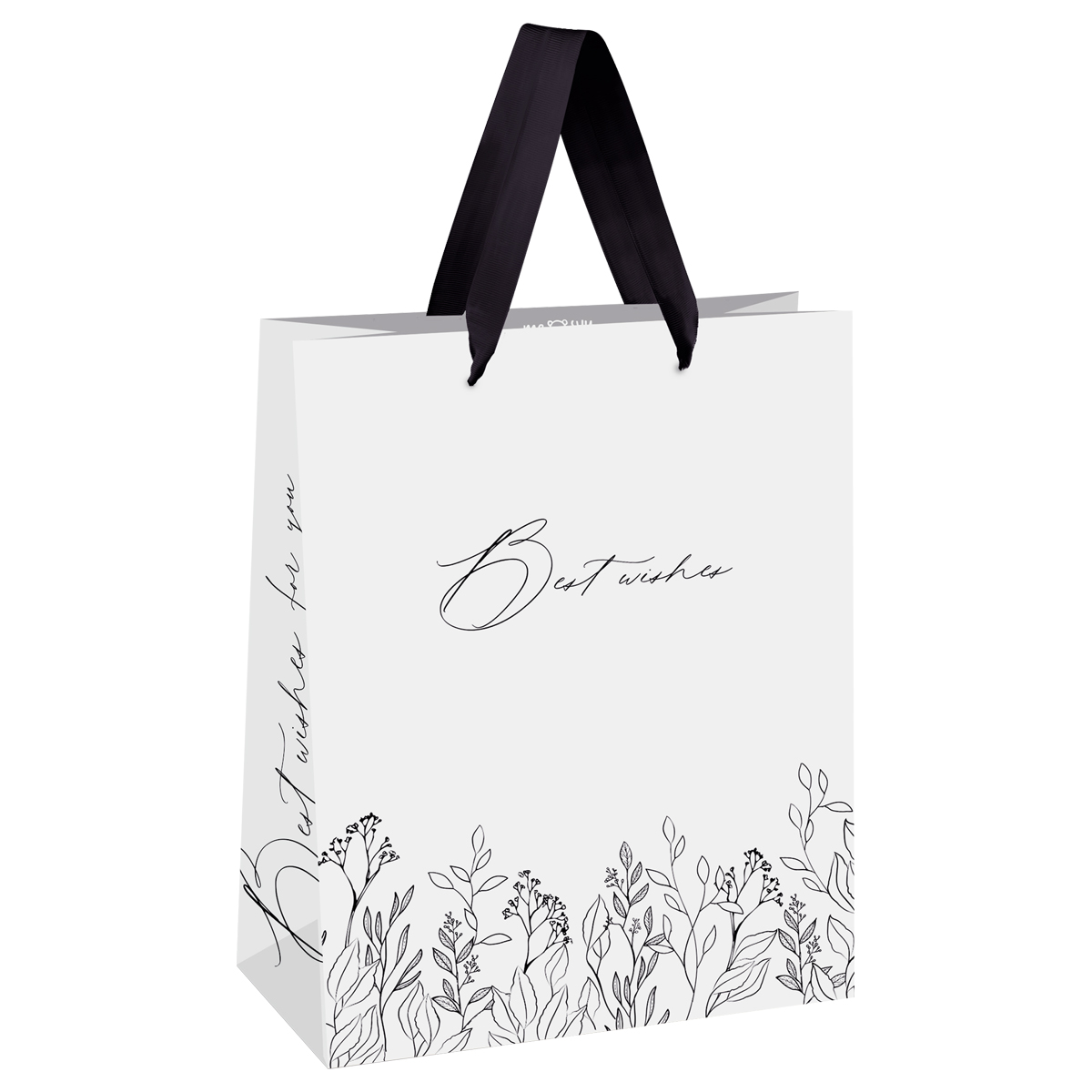 Пакет MESHU "Светлые пожелания" поможет сделать подарок ярким и запоминающимся. Размер изделия — 18*23*10 см. Пакет изготовлен из плотного мелованного картона. Рисунок выглядит ярко благодаря высокому качеству печати. В отделке используются матовая ламинация и фольга. Ручки сделаны из ленты, которая отличается высокой прочностью и насыщенностью цвета.