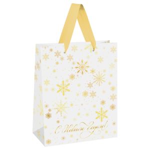 Пакет MESHU "Gold snowflake" — беспроигрышный способ красиво преподнести подарок на Новый год и Рождество. Размер подарочного пакета — 26*32*12 см. Изготовлен из плотного мелованного картона с матовой ламинацией и фольгой. Дизайн пакета вдохновлен зимними праздниками и создает атмосферу волшебства и уюта. Ручки пакета — лента, которая отличается высокой прочностью и насыщенностью цвета.