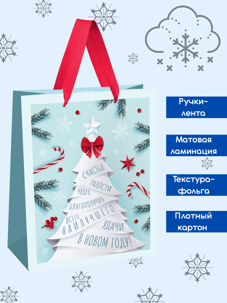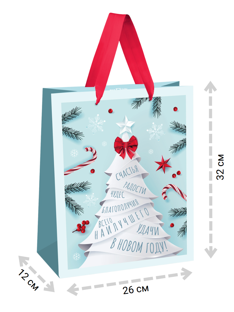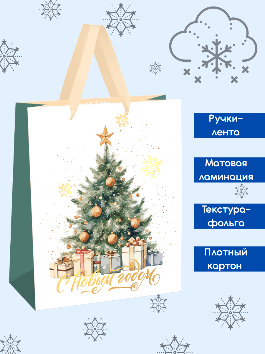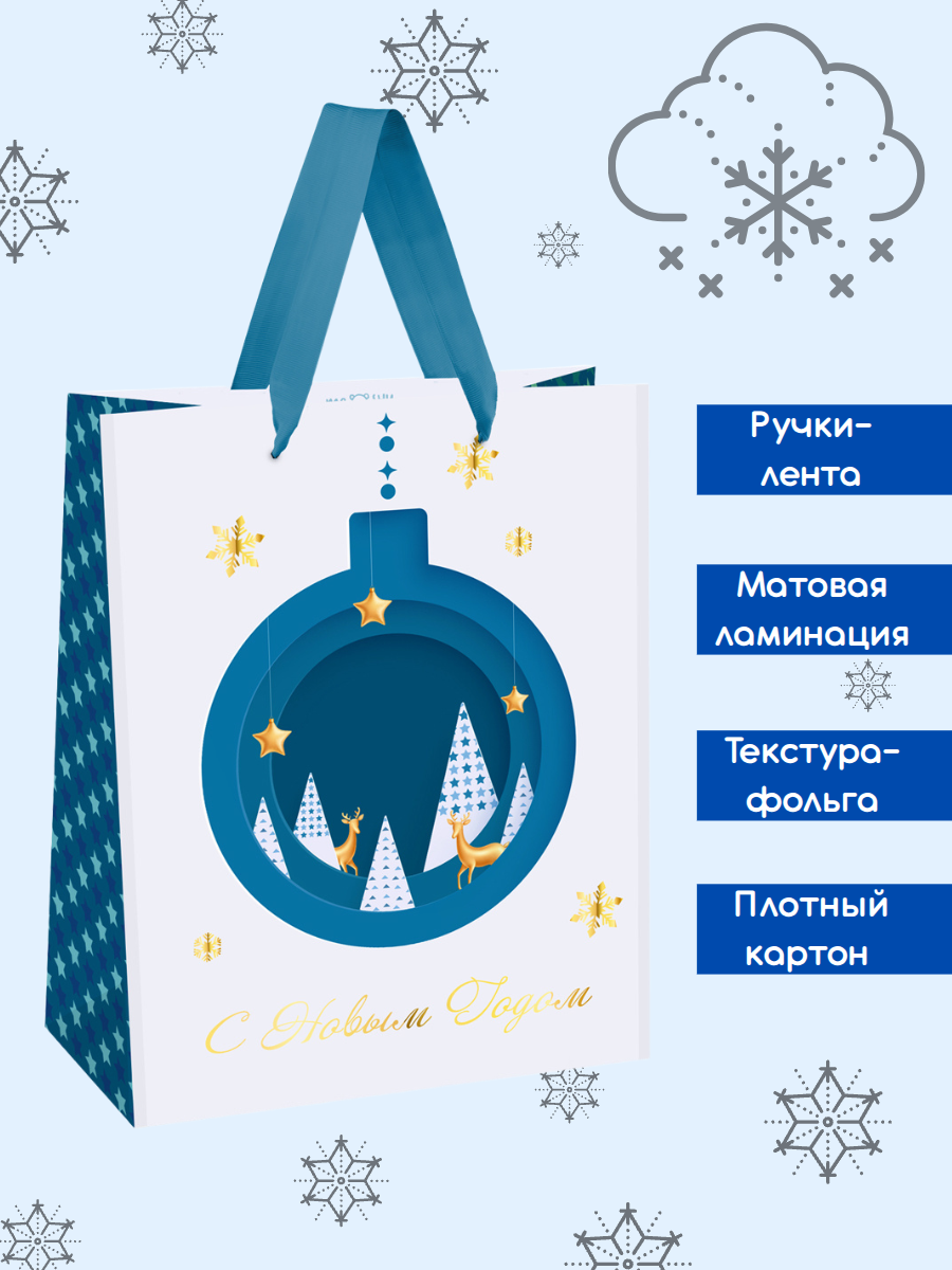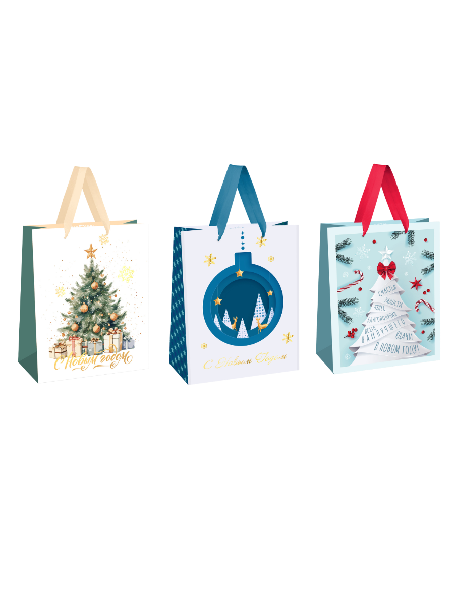 Комплект из 3 новогодних подарочных пакетов MESHU — беспроигрышный способ красиво преподнести подарок на Новый год и Рождество. Размер подарочного пакета — 26*32*12 см. Изготовлен из плотного мелованного картона с матовой ламинацией и фольгой. Дизайн пакета вдохновлен зимними праздниками и создает атмосферу волшебства и уюта. Ручки пакета — лента, которая отличается высокой прочностью и насыщенностью цвета.