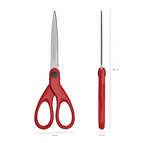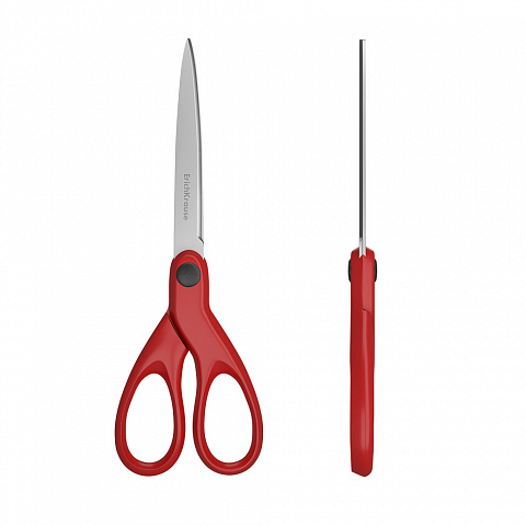 Ножницы ErichKrause 18см, цвет красный. Ножницы с лезвиями из высококачественной нержавеющей стали. Форма лезвий имеет усовершенствованную дугообразную форму с улучшенной двойной заточкой, повышающую легкость резки при максимальном количестве листов. Ручки классической формы изготовлены из ударопрочного пластика.
