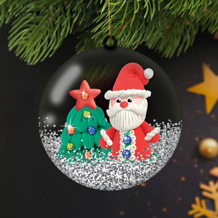 Создаём уникальный ёлочный шар.Для начала необходимо создать яркого персонажа из массы для лепки. Масса - мягкий и приятный на ощупь материал понравится и взрослым и детям. Подробный мастер-класс поможет даже новичку справиться с творческой задачей. Оживите персонажа с помощью глазок и добавьте блеска страз. Высыпьте блёстки в шар, посадите милую фигурку. Дополните шар яркой лентой. Готово!Готовый шар станет оригинальным украшением ёлки, а также запоминающимся подарком для близких.