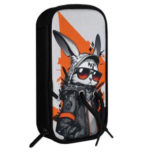 Пенал школьный Феникс+, арт.68335/ 24 КРУТОЙ КРОЛИК (без наполнения, 10х20х4.5 см, полиэстер, молния, металлические люверсы, сублимационная печать, шнурки, ПЭТ-пакет).