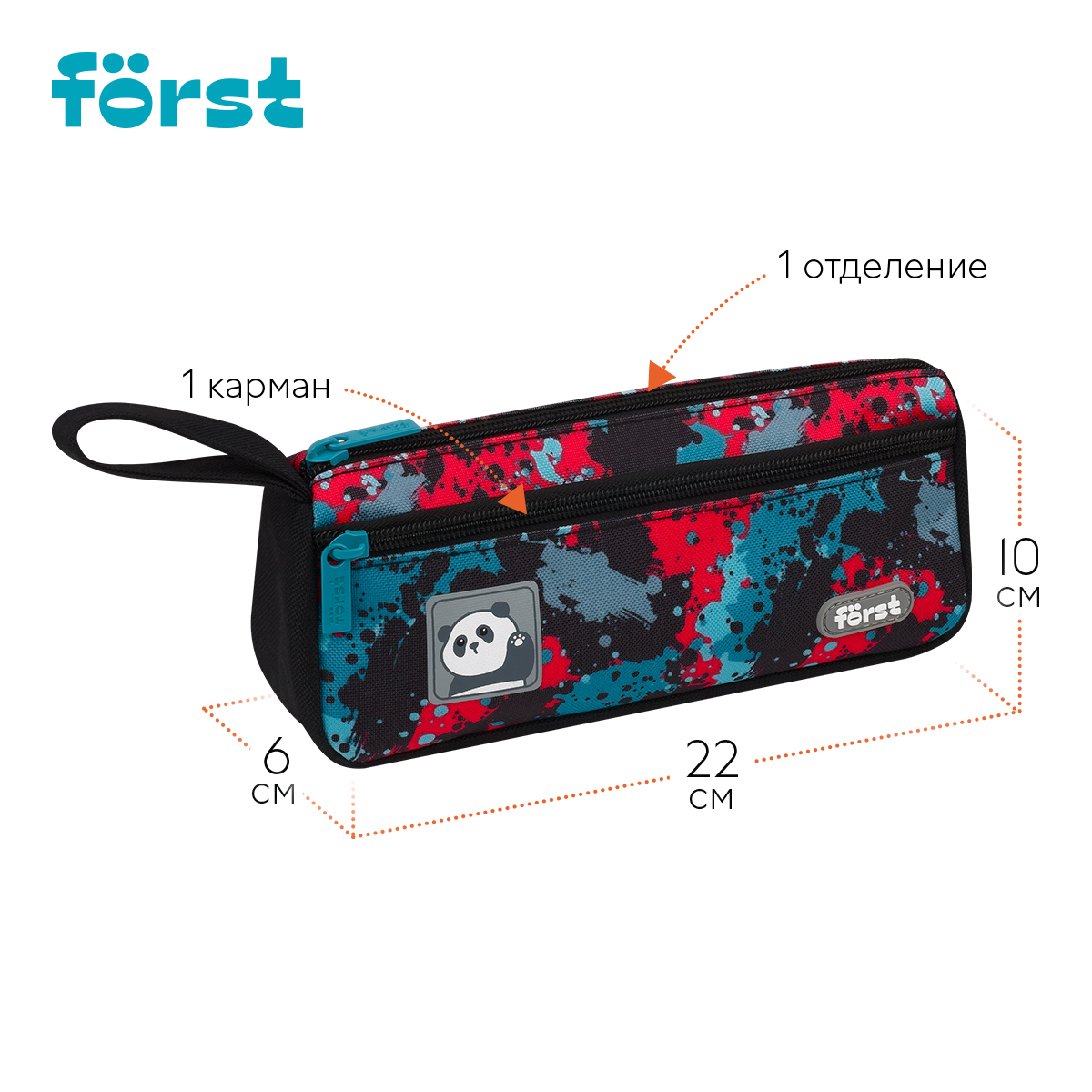 Пенал мягкий 1 отделение, 1 карман, 220*100*60 F?rst "Sweet panda", текстиль 379539
