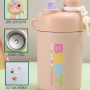 Двойная чашка-термос с соломинкой из нержавеющей стали, розовая