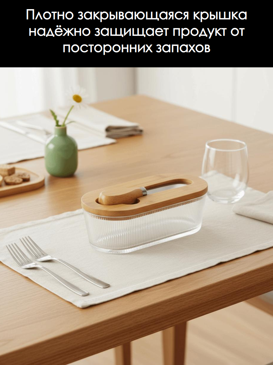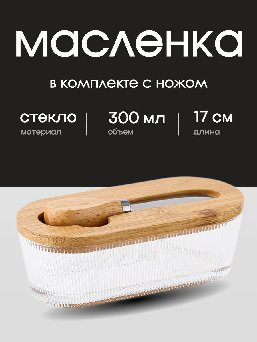 Стеклянная ёмкость/масленка с крышкой и ножом, 300 мл - это практичный и стильный аксессуар для сервировки стола. Изготовленная из прочного стекла, она обеспечивает долговечность и надежность использования. Крышка и нож, входящие в комплект, позволяют аккуратно и гигиенично намазывать масло на хлеб, а также использовать масленку для хранения различных продуктов. Стеклянная ёмкость/масленка с крышкой и ножом, 300 мл, станет отличным дополнением к вашему столу и поможет создать уютную и комфортную атмосферу для приема пищи.