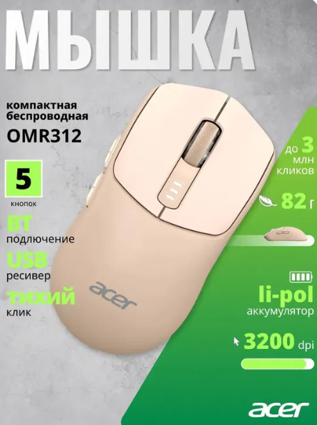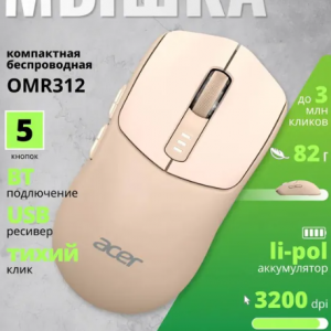 Мышь Acer OMR312 [ZL.MCECC.036] розовая оптическая 3200dpi cordless BT/Radio USB