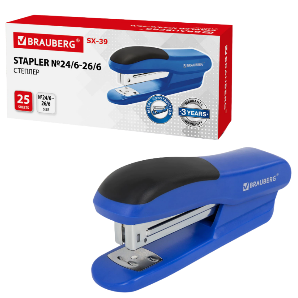 Cтеплер с металлическим механизмом BRAUBERG "SX-39" незаменим в работе с большим объемом документов. Полезный аксессуар, который можно встретить на столе офисных работников, школьников и студентов.Способен скрепить до 25 листов. Стандартный размер скоб №24/6, 26/6. Глубина закладки бумаги - 50 мм. Виды сшивания: закрытый, открытый, прямой. За счет компактных размеров не займет на рабочем столе много места. Имеет классический дизайн, комбинированный цвет, эргономичную форму корпуса.