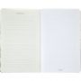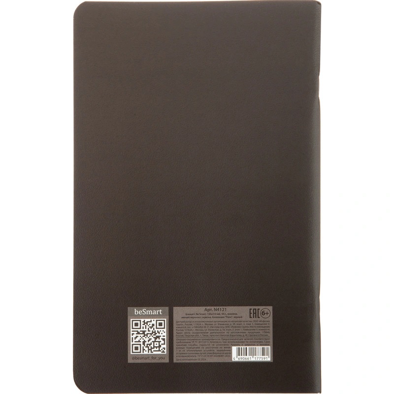Внутренний блок включает 48 листов белой офсетной бумаги плотностью 65 г/кв. м. Листы разлинованы в линейку серого цвета, без полей, белизна бумаги составляет 100%. Перфорация отсутствует. Блокнот скреплён скрепками с расположением слева, что позволяет удобно перелистывать страницы. Изделие производится в России и поставляется по одной штуке в упаковке.