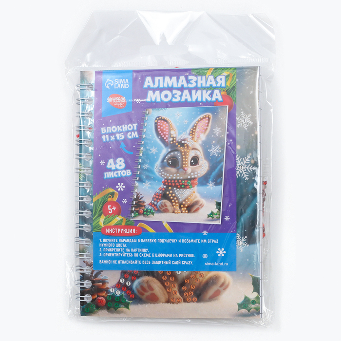 Алмазная мозаика на новый год с частичным заполнением для детей на блокноте «Зайка», 11?15 см, 48 листов, набор для творчества 10367599