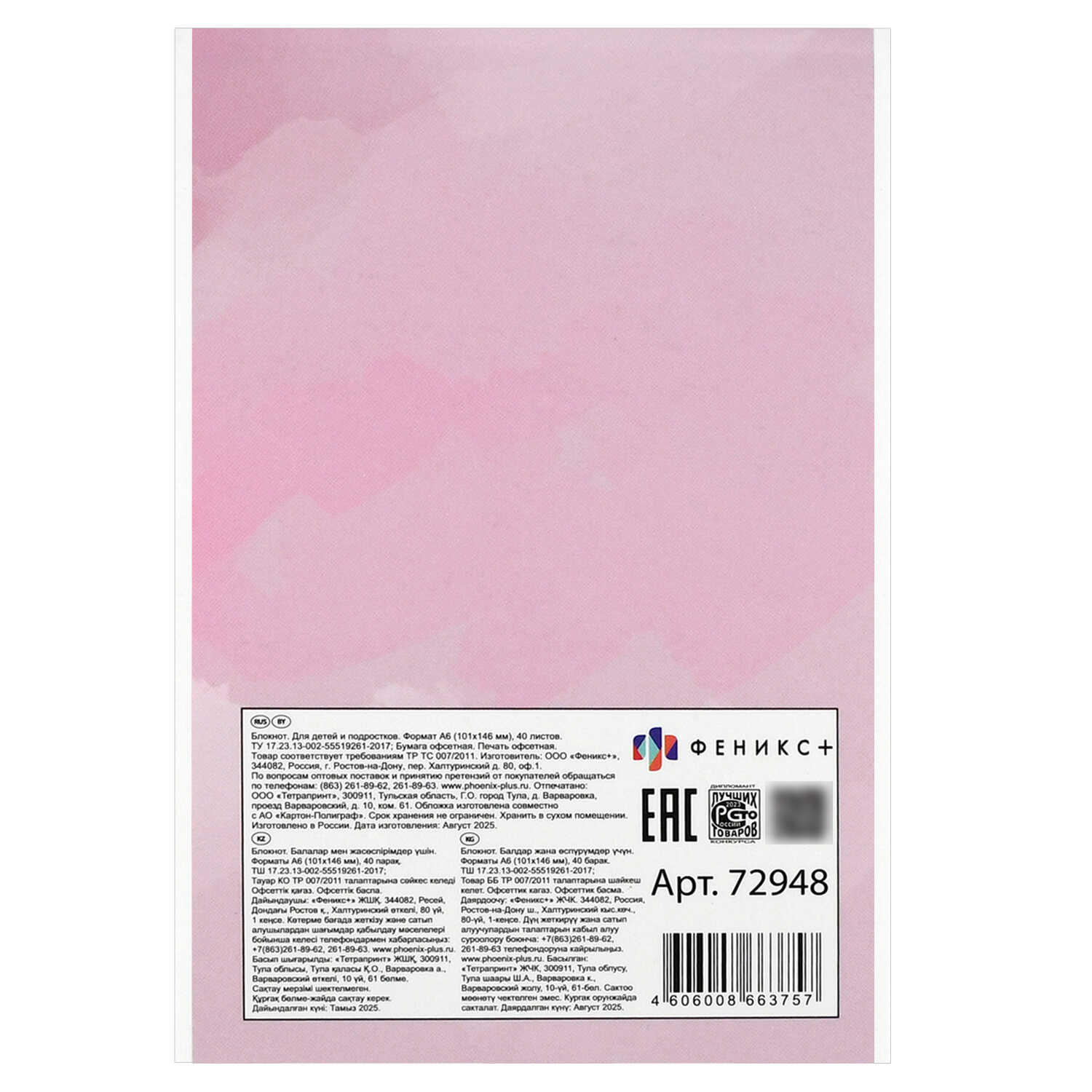 Блокнот А6 40л. арт. 72948 БЕЛЫЙ КОТ / Блок - белый офсет 60 г/м?, клетка, мягкий переплёт