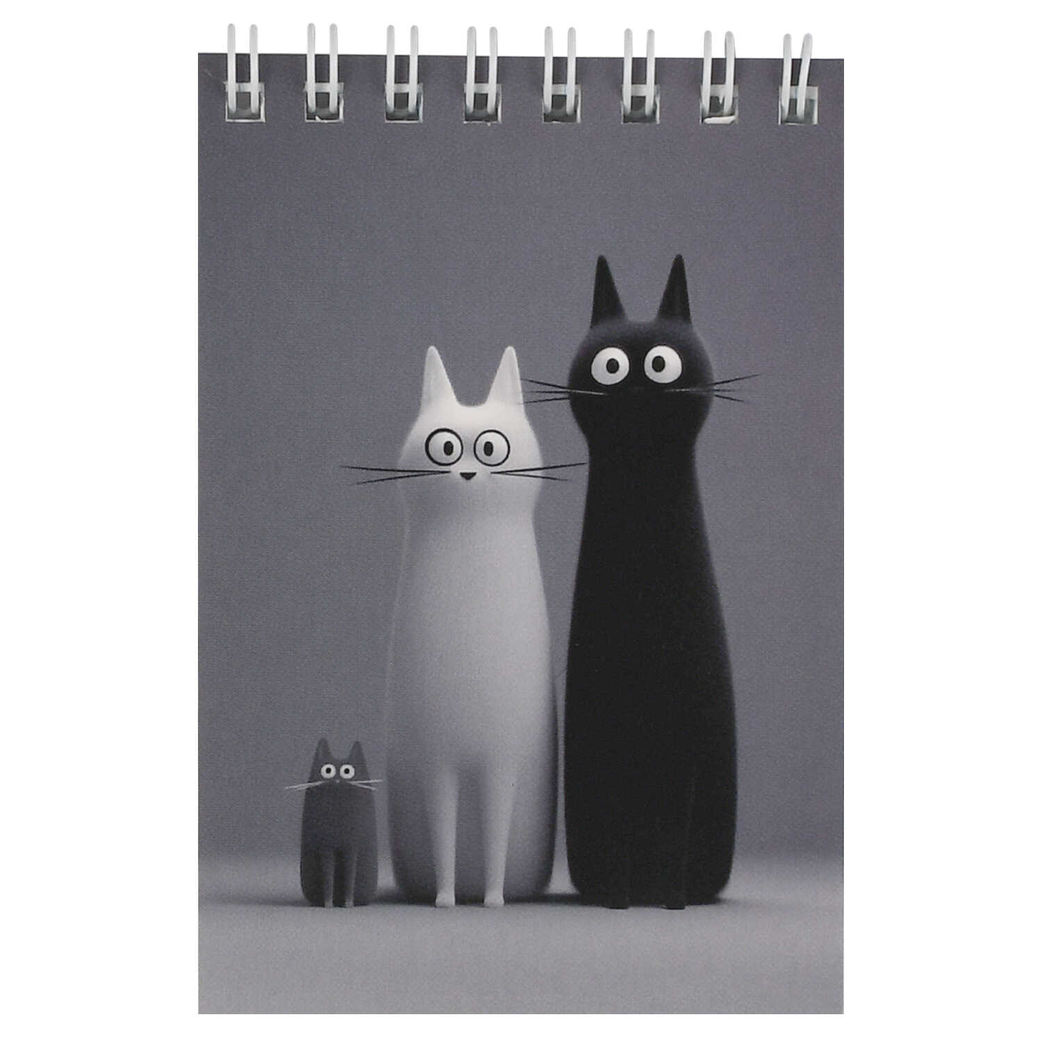 Блокнот, А7, 40 л, арт. 73410 ЧЕРНО-БЕЛЫЕ КОТЫ / Блок - белый офсет 65 г/м², клетка, гребень по короткой стороне, УФ-лак сплошной