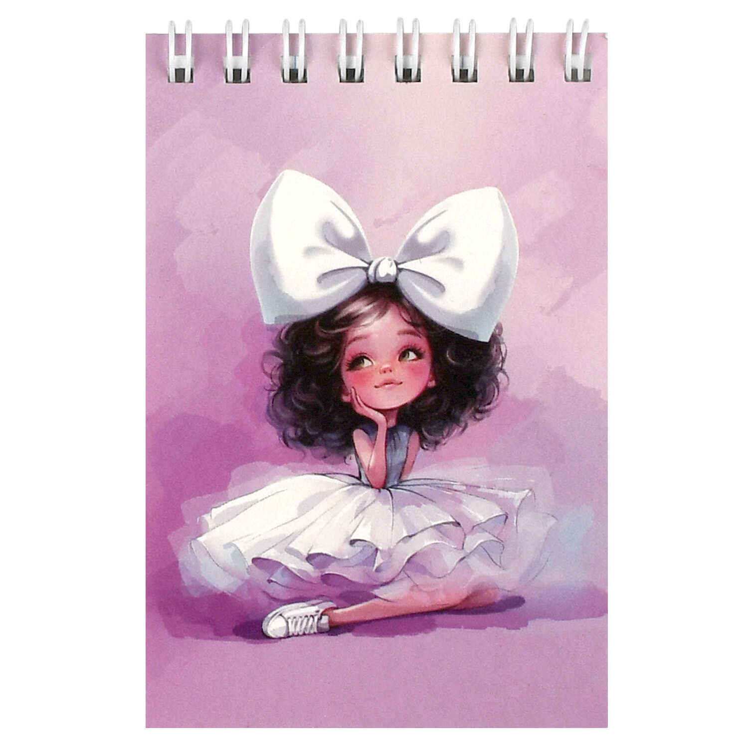 Блокнот, А7, 40 л, арт. 73415 БАЛЕРИНА С БАНТОМ / Блок - белый офсет 65 г/м², клетка, гребень по короткой стороне, УФ-лак сплошной
