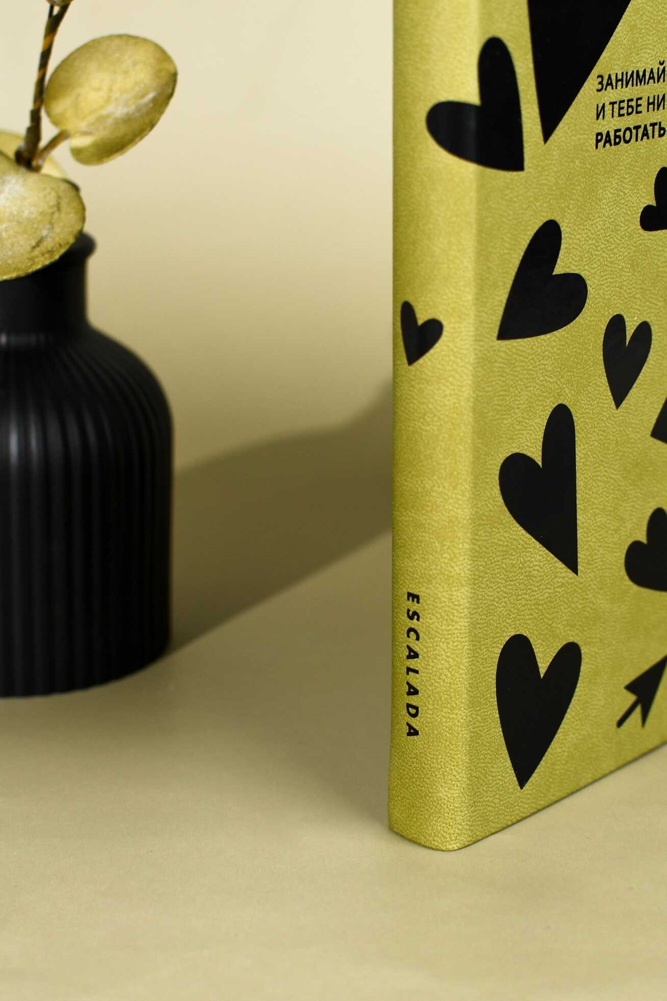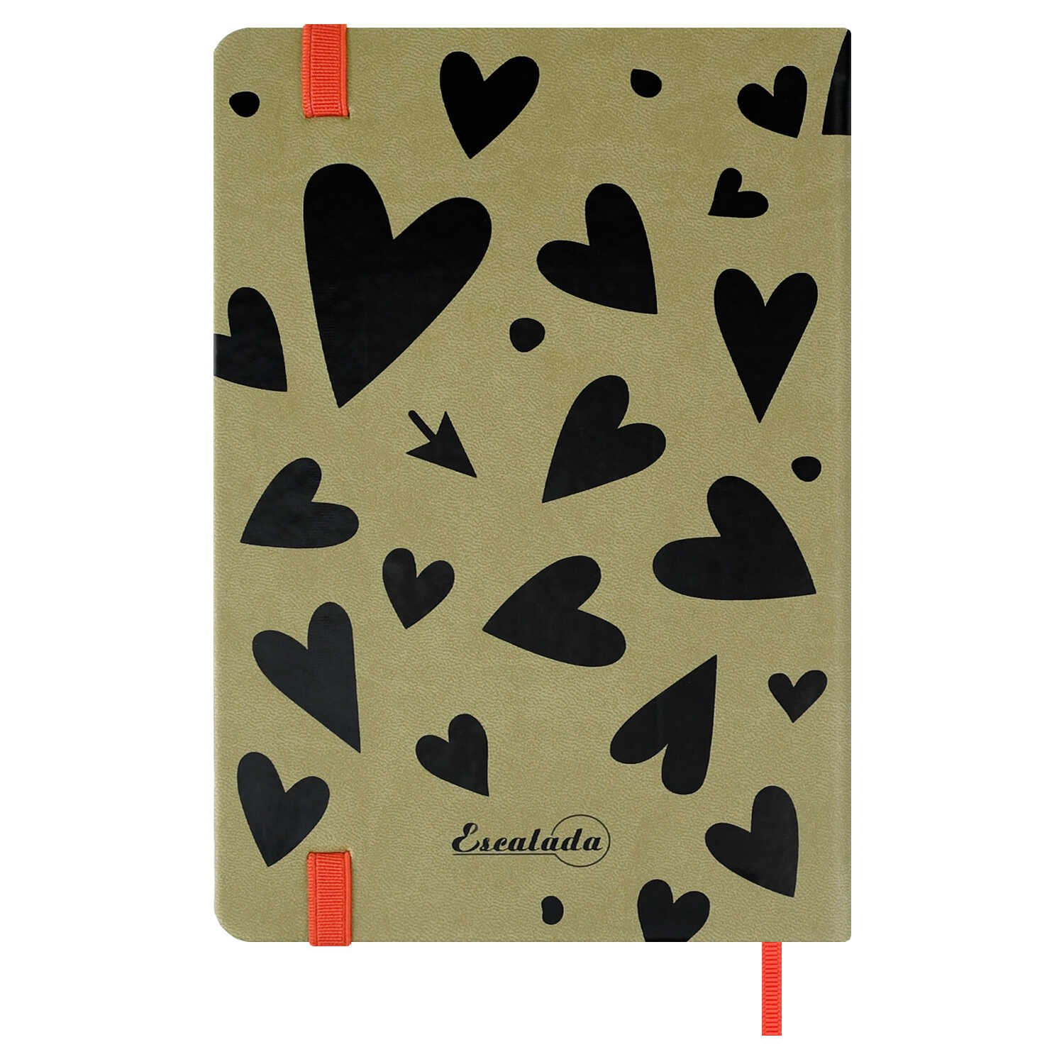 Записная книжка ESCALADA, А5, 120 л., арт. 70723/ 15 СЕРДЦА (кожзам: 140x205 мм, твёрдый переплёт, материал обложки: искусственная кожа "Виннер"; способ крепления блока: ниткошвейный; декор: печать шелкографией в одну краску; вн. блок: 120 л., белый офсет 70 г/м², печать в одну краску (линия), справочный материал: нет; перфорация углов блока: нет; отделка среза: окрашивание пантоном; закладка/-и: одно ляссе, каптал: есть; форзац: печать пантоном, особенности: застёжка-резинка, карман на форзаце; персонализация возможна: нет; индивидуальная упаковка: промостикер + ПЭТ-пакет)