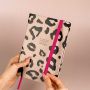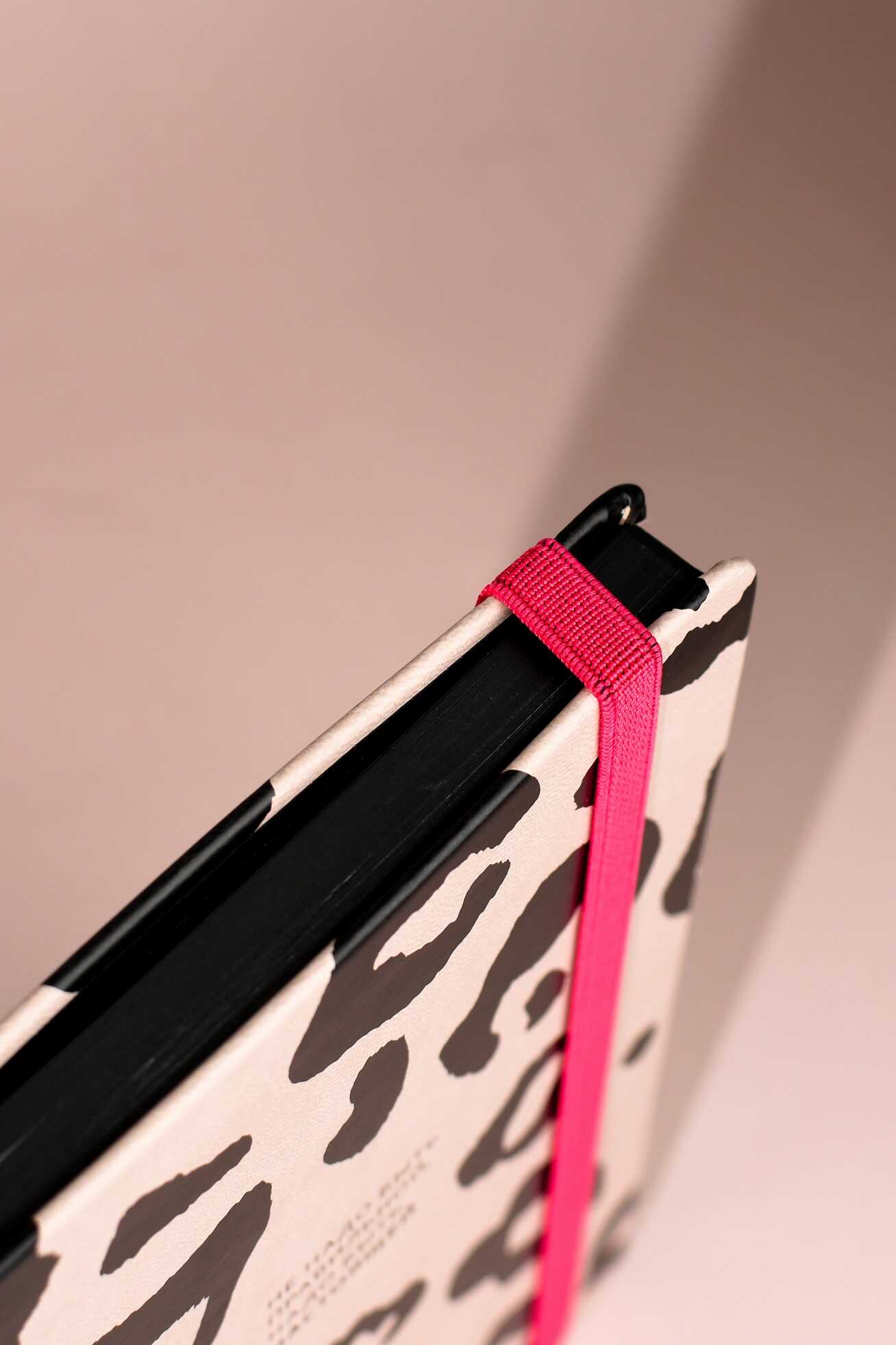 Записная книжка ESCALADA, А5, 120 л., арт. 70722/ 15 ЛЕОПАРД (кожзам: 140x205 мм, твёрдый переплёт, материал обложки: искусственная кожа "Виннер"; способ крепления блока: ниткошвейный; декор: печать шелкографией в одну краску; вн. блок: 120 л., белый офсет 70 г/м², печать в одну краску (линия), справочный материал: нет; перфорация углов блока: нет; отделка среза: окрашивание пантоном; закладка/-и: одно ляссе, каптал: есть; форзац: печать пантоном, особенности: застёжка-резинка, карман на форзаце; персонализация возможна: нет; индивидуальная упаковка: промостикер + ПЭТ-пакет)